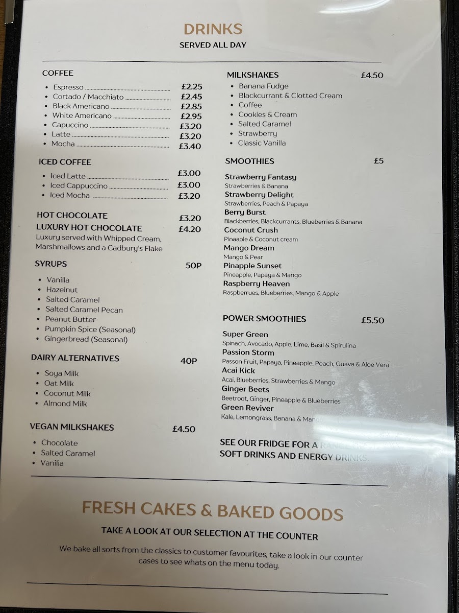 - Children’s Menu: Includes classic breakfast items such as sausage breakfast, bacon breakfast, cheese on toast, beans on toast, and American pancakes, catering specifically to younger diners.